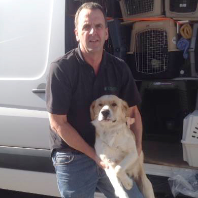 Mark transports dogs from high kill shelters to other rescue groups throughout California, Oregon, and Washington, all from his home base in Eugene, Oregon. The work involved starts before a dog ever gets inside his Mercedes Sprinter van, which is large enough for him to walk through when loaded with kennels.